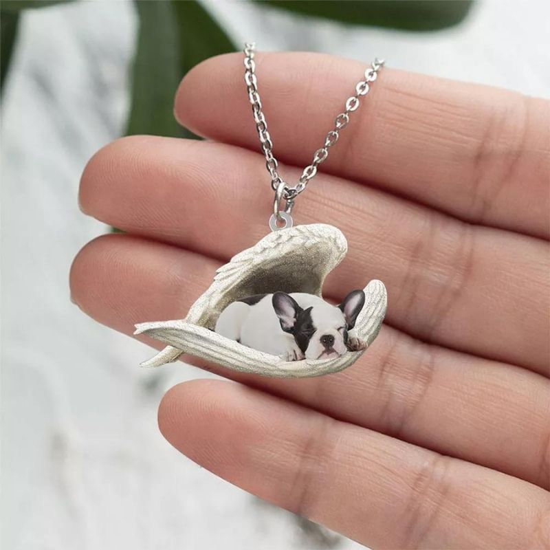 French Bulldog Sleeping Angel Stainless Steel Necklace SN006