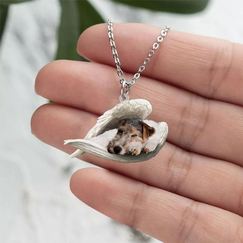 Fox Terrier Sleeping Angel Stainless Steel Necklace SN092