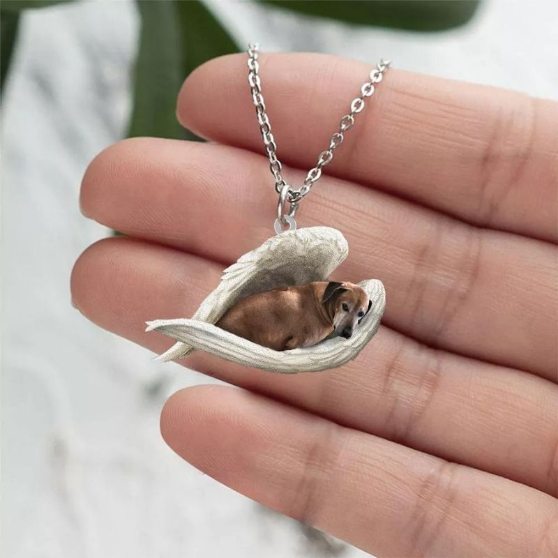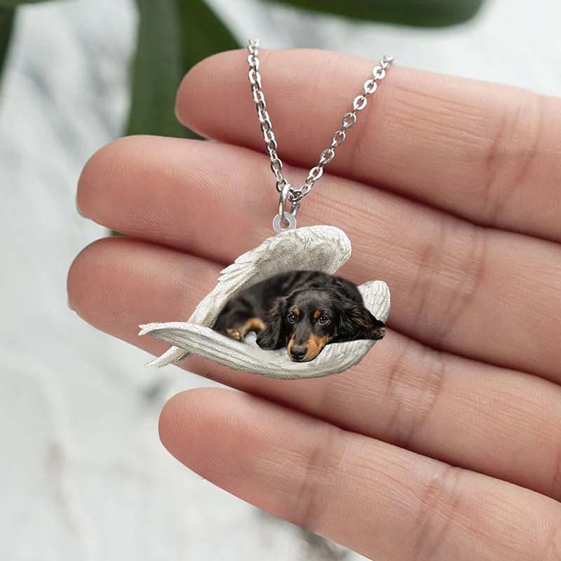 Dachshund Sleeping Angel Stainless Steel Necklace SN036