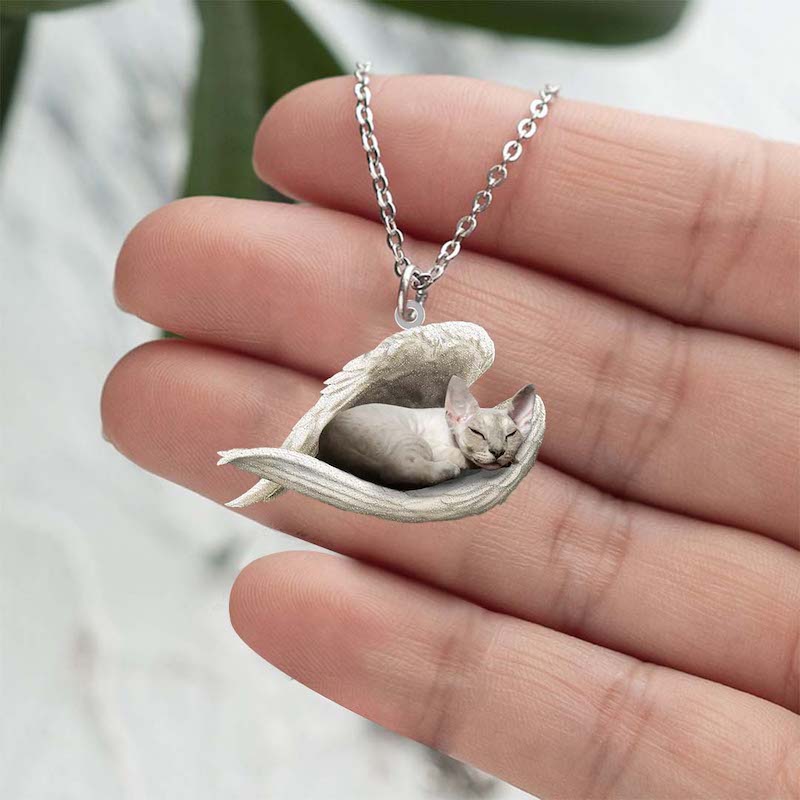 Devon Rex Cat Sleeping Angel Stainless Steel Necklace SN183
