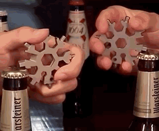 18-in-1 Snowflake Multi-Tool was originally designed to be a snowboarding multi-tool, however, we found that it is useful to carry the prototypes around on our key chains, in our pockets, and attached to our backpacks, but the usages of this tool is so much more than these. You can also use it to open the beer bottle, turn the screw, fix snowboarding and bicycle, open the carton box and so on. Besides, many of our customers buy this snow shape multitool as a Christmas gift for guys or a stocking stuffer for men. It is also a great choice to be a Christmas tree decoration.🎅