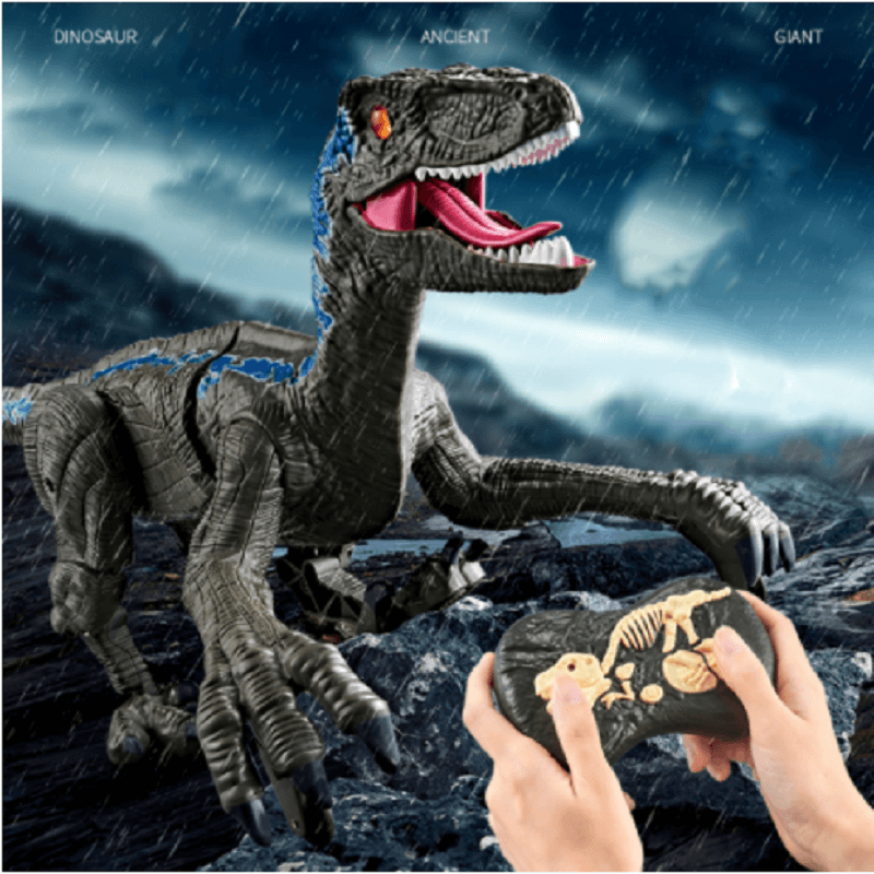 🦕Remote-controlled dinosaur brought the real Jurassic dinosaur Velociraptor to life with walking movements. this remote-controlled dinosaur has 3D eyes that mimic the real eyes of a dinosaur, as well as walking, growling, swinging its body and tail from side to side, and imitating a real dinosaur.🦖