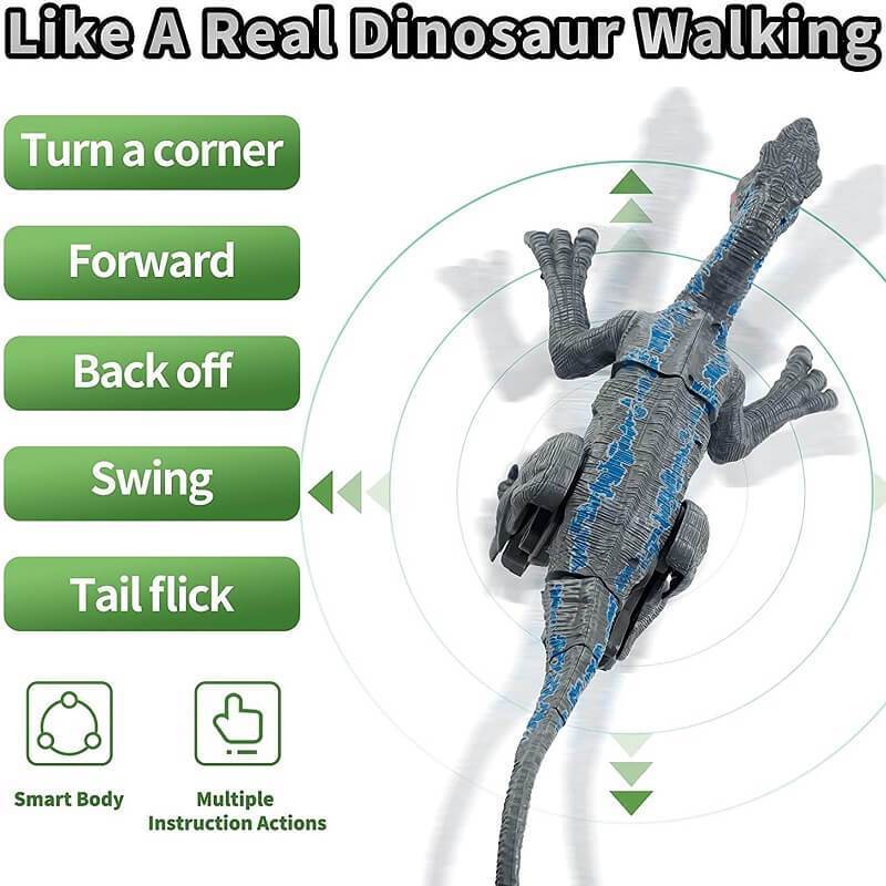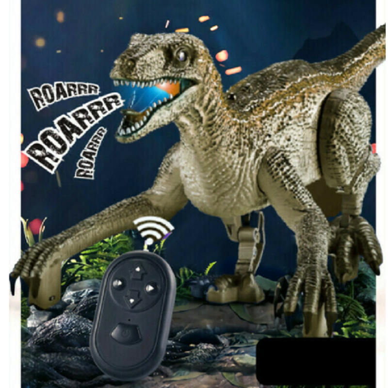 As long as press the toy dinosaur head button, the toy dinosaur can demonstrate a real Velociraptor is how to walk and roar, boys and girls over three years old can easily control it forward, backward, left and right, wagging body and tail.