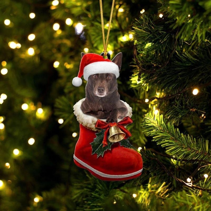 Australian Kelpie In Santa Boot Christmas Hanging Ornament SB071