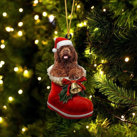 Barbet In Santa Boot Christmas Hanging Ornament SB157