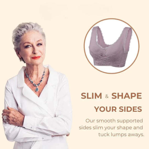 The Front Buckles Bra offers wireless support while being stretchable enough to NOT dig in and cause annoying back & armpit fat, smooths out side boobs, bulges & unsightly bra lines.
