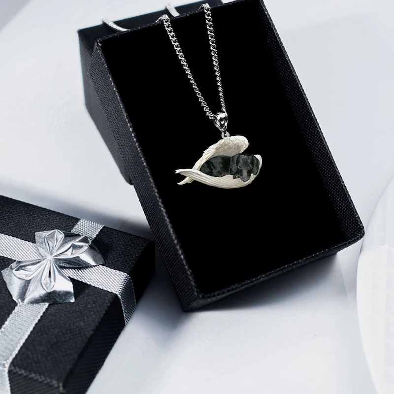 Dashuand (Black) Sleeping Angel Stainless Steel Necklace SN155