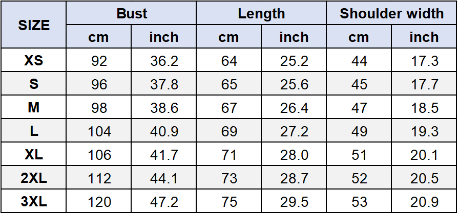 - Size: XS~3XL