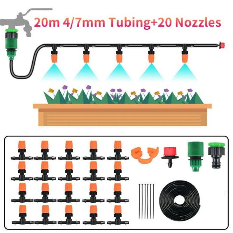 High-Quality Greenhouse Irrigation System: This drip irrigation system made of PP+POM material. No odor or poison and no effect on plant growth. The drip irrigation hose made of UV-resistant materials, unmatched resistance to chemicals, and it can be buried or put on the surface of the ground in any weather.