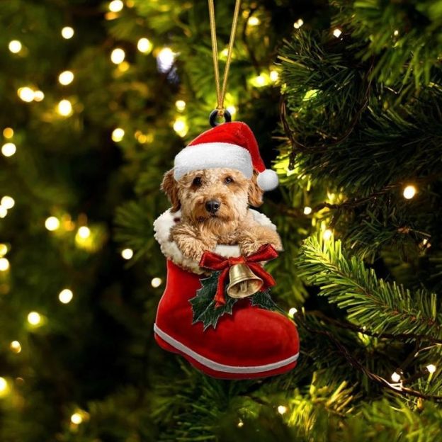 Goldendoodle In Santa Boot Christmas Hanging Ornament SB003