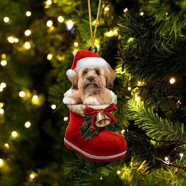 Lhasa Apso In Santa Boot Christmas Hanging Ornament SB045