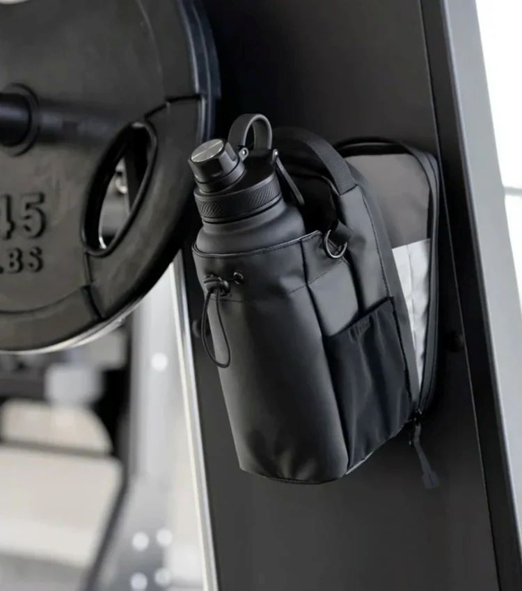 Absolutely! The spacious main pocket can hold gym towels, clothes, and accessories, while the quick-access side pockets are perfect for your phone, keys, or earbuds. Plus, the dedicated water bottle pocket holds up to a 46 oz insulated bottle.