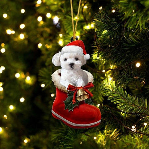 Maltese In Santa Boot Christmas Hanging Ornament SB004