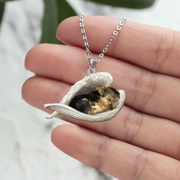 Morkie Sleeping Angel Stainless Steel Necklace SN132