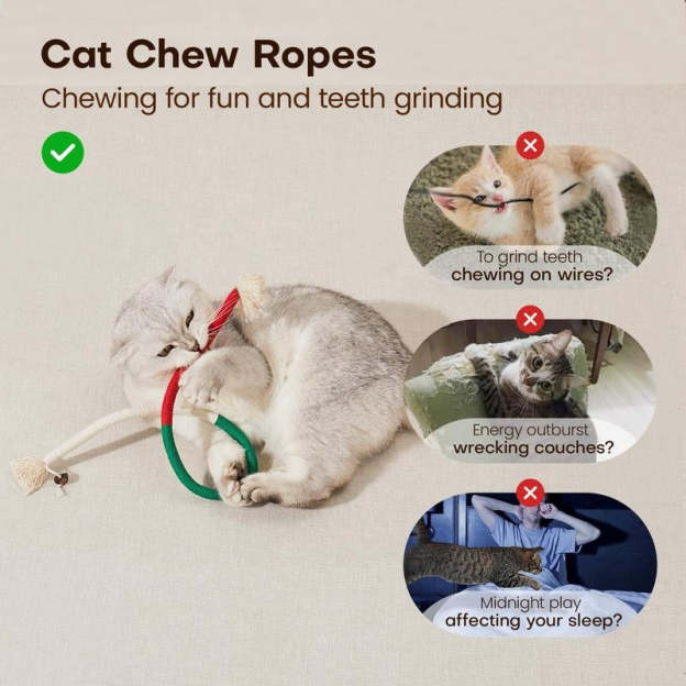Cats love to chew, and these natural cotton rope toys are perfect for keeping your kitty's teeth clean and healthy. Designed to combat tartar and freshen breath, these chew ropes make dental hygiene fun for your furry friend.