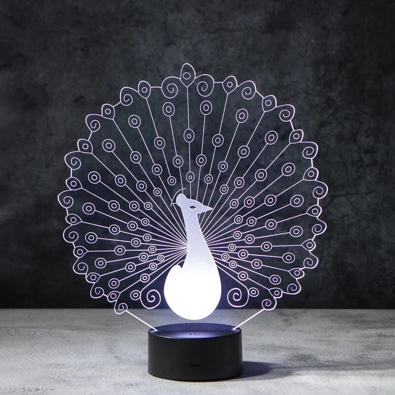 The Peacock 3D LED Illusion Lamp is a combination of art and technology that creates an optical 3D illusion and plays tricks on the eyes. From afar, you will see the design, but as you get up close, you see a thin acrylic glass sheet that's completely flat. It's bound to dazzle and impress your guests while always lighting up the room and your lives.
