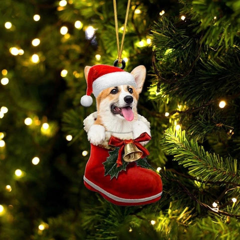 Pembroke Welsh Corgi In Santa Boot Christmas Hanging Ornament SB063