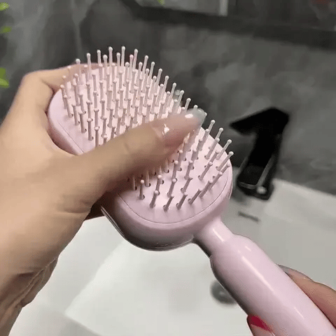 Press to lift hair from the bristles instantly — keeps the brush clean and hygienic.