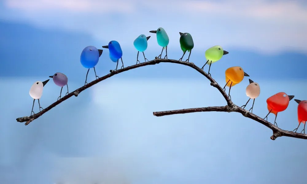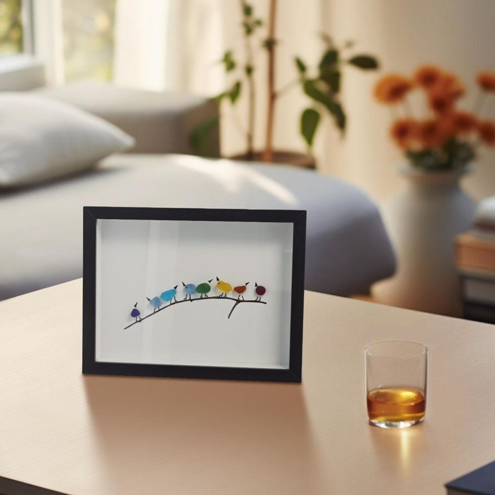 Artistic The colors of each bird are the most beautifully matched and will not disappoint. The legs of the birds are painted by the designer himself. The combination of real sea glass and the artist's meticulous craftsmanship creates a visually stunning and immersive experience for any viewer.