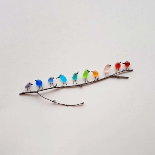 - 1 x Sea Glass Rainbow Birds - A Truly Unique Handmade Artwork