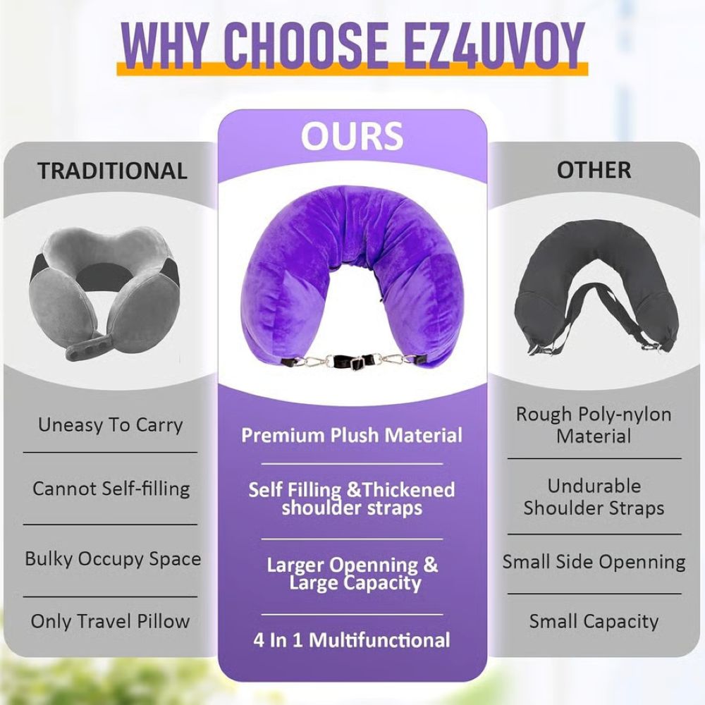 Unlike standard neck pillows that only take up space, our stuffable pillow works double duty — it holds your clothes *and* supports your neck. No more bulky accessories that do just one thing. Travel smarter with a pillow that actually earns its place in your bag (or on your shoulder).