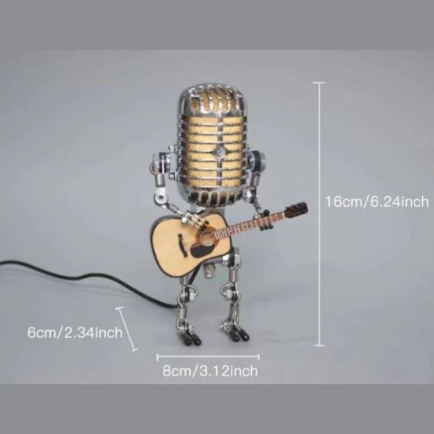 The microphone robot is not only an interior decoration for lighting, but also an ornament for viewing. The power cord is black.
