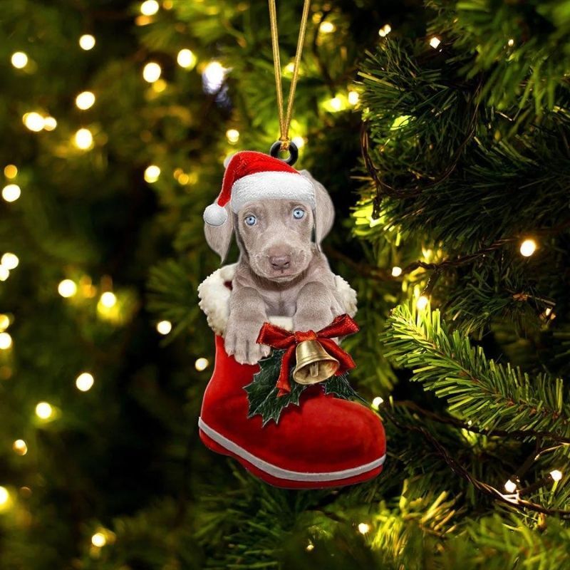 Weimaraner In Santa Boot Christmas Hanging Ornament SB123