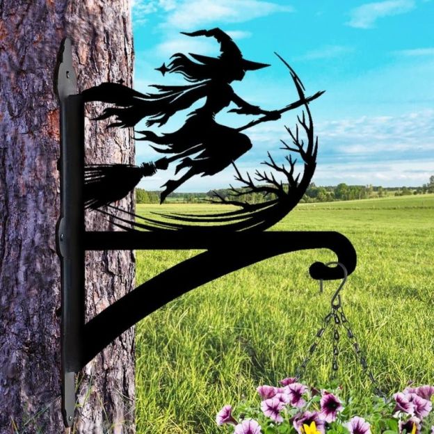 Witch on Broomstick Metal Hanging Bracket Plant Stand PS148
